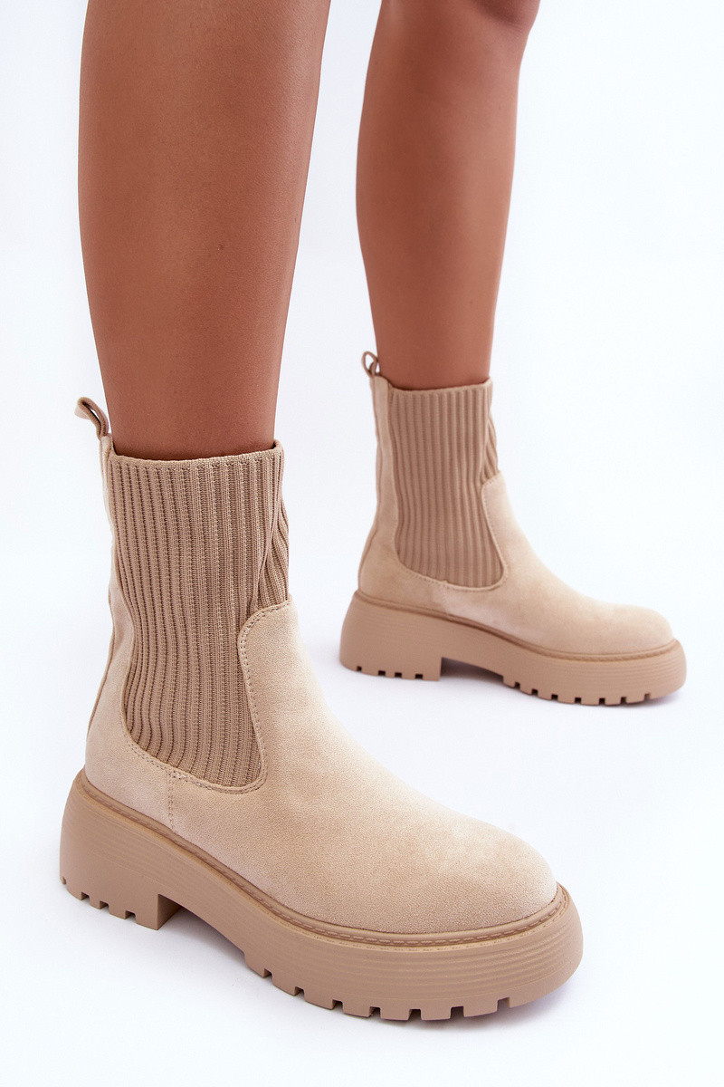 INildlederschuhe mit sockenartiger Innensohle mit einer Plattform Und flache Absätze Beige ReZuam