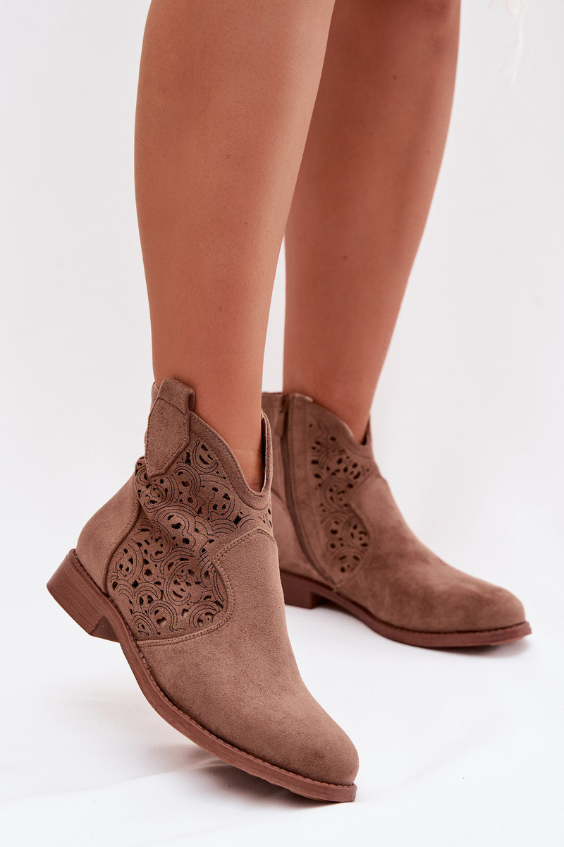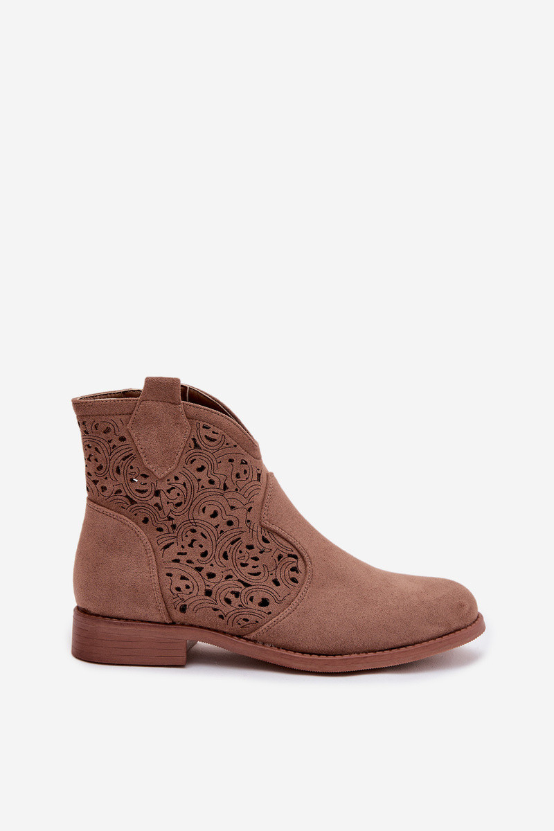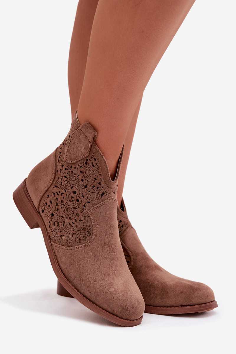 Ajourierte Damen-Stiefeletten mit breiten Absätzen S.Barski HY61-8026 braune Farbe