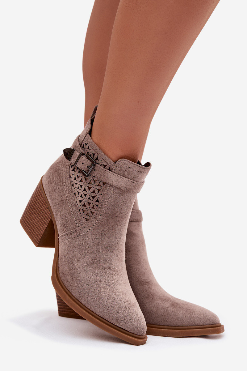 mit durchbrochenen Elementen Damenstiefel Durchbrochenm Ein Beispiel I Złotą mit Schnallen Beige Deloriah