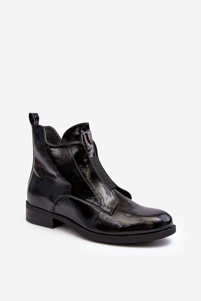 mit Lackeffekt Damenstiefel mit breiten Absätzen sich Zuarm laufen schZuarze Farbe S.Barski HY75-120 schZuarze Farbe