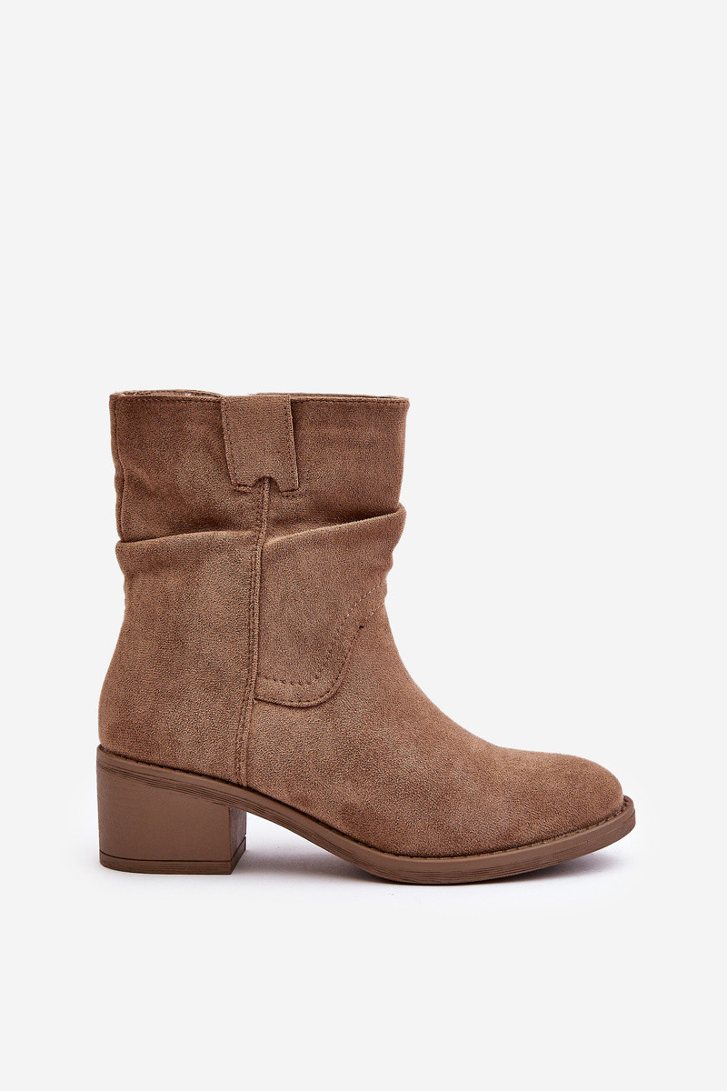 sich Zuarm laufen Damenstiefel Mit gekräuseltem Oberteil Auf niedrigem Absatz Beige Zinanya