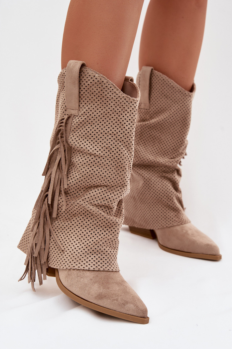 Stiefel im CoZuboy-Stil mit Fransen mit Absätzen Beige Pireya